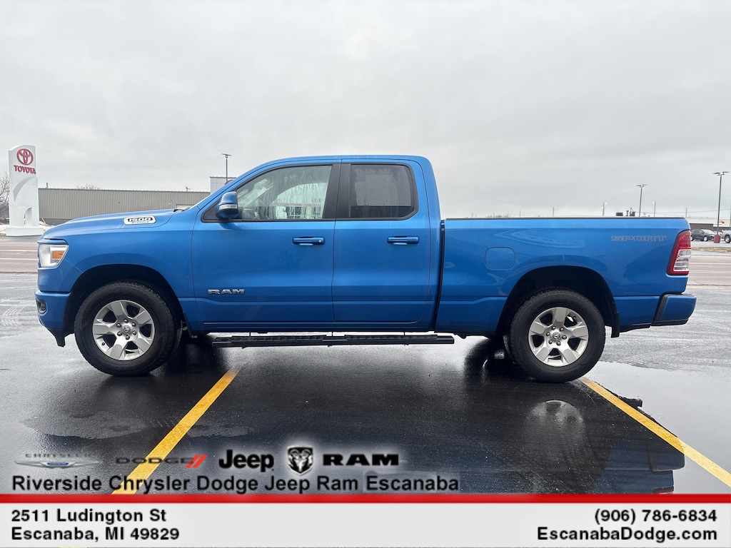 BIG HORN LEVEL 1 EQUIPMENT GROUP Google Android Auto®, SiriusXM Radio Service, Bluetooth® Handsfree Phone & Audio, USB Host Flip, Rear Window Defroster, Integrated Center Stack Radio, Rear View Auto Dim Mirror, For Details, Visit DriveUconnect.com, Power Adjustable Pedals, For More Info, Call 800-643-2112, Rear Power Sliding Window, Rear Dome w/On/Off Switch Lamp, Connectivity - US/Canada, Glove Box Lamp, 4G LTE Wi-Fi Hot Spot, Exterior Mirrors w/Heating Element, Power 8-Way Driver Seat, Auto Dim Exterior Driver Mirror, Radio: Uconnect 5 W w/8.4 Display, 8.4 Touchscreen Display, Class IV Receiver Hitch, Black Premium Power Mirrors, Apple CarPlay®, Big Horn IP Badge, SiriusXM Satellite Radio, Exterior Mirrors w/Supplemental Signals, Exterior Mirrors Courtesy Lamps, Universal Garage Door, RADIO: UCONNECT 5 NAV W/8.4 DISPLAY Google Android Auto®, SiriusXM Radio Service, USB Host Flip, Disassociated Touchscreen Display, HD Radio, For Details, Visit DriveUconnect.com, Integrated Center Stack Radio, Connectivity - US/Canada, Air Conditioning ATC w/Dual Zone Control, GPS Navigation, 4G LTE Wi-Fi Hot Spot, SiriusXM w/360L, All Radio Equipped Vehicles, Connected Travel & Traffic Services, All R1 High Radios, 8.4 Touchscreen Display, Apple CarPlay®, BLACK, DELUXE CLOTH BUCKET SEATS Power 8-Way Driver Seat, Bucket Seats, Full Length Floor Console, Delete LED Lamp - Floor Console Bin, Power 2-Way Driver Lumbar Adjust, REMOTE START SYSTEM, TRANSMISSION: 8-SPEED AUTOMATIC (850RE) (STD), ENGINE: 3.6L V6 24V VVT ETORQUE UPG I (STD). Ram Big Horn with Hydro Blue Pearlcoat exterior and Black interior features a V6 Cylinder Engine with 305 HP at 6400 RPM*.