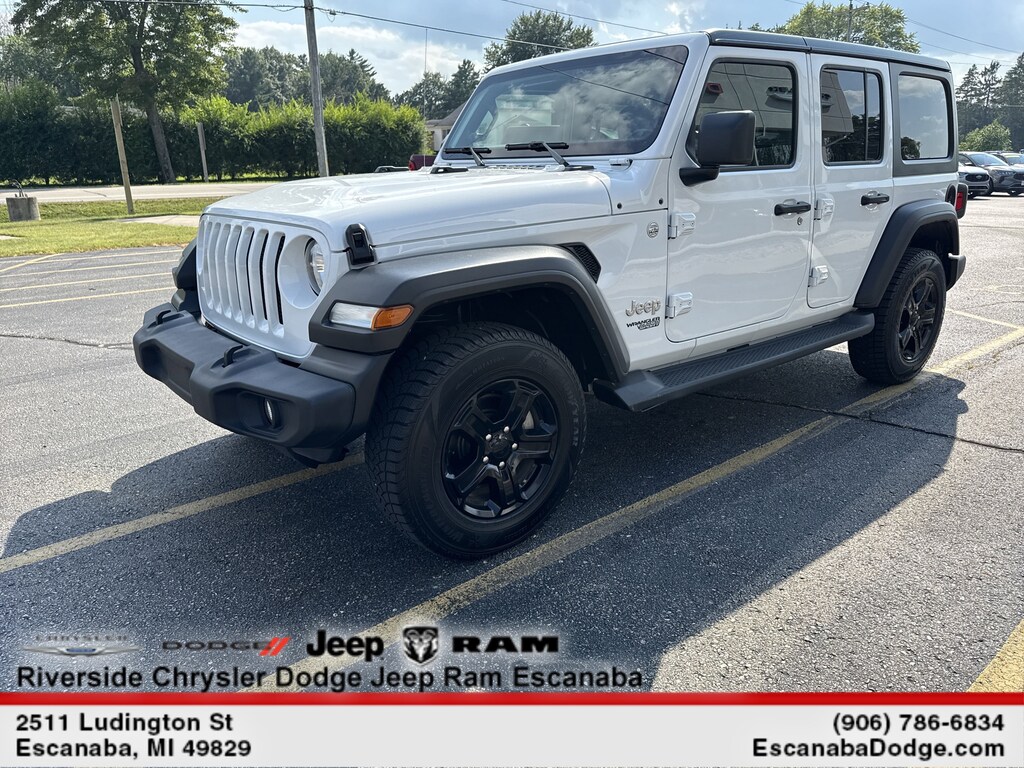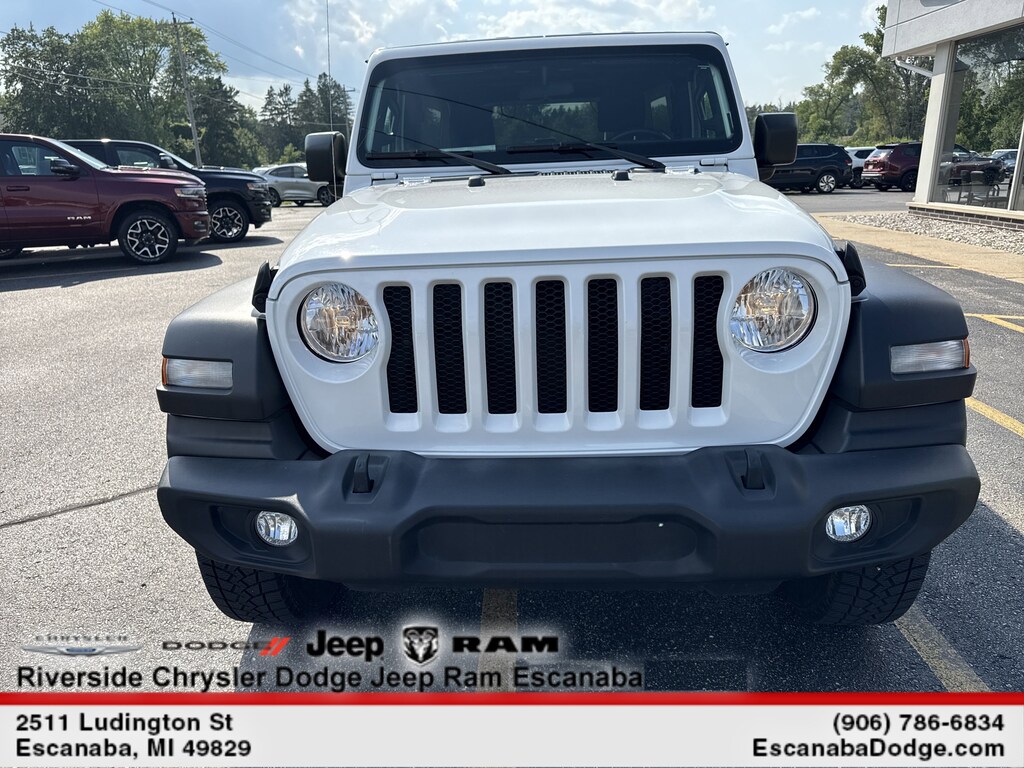 TRANSMISSION: 8-SPEED TORQUEFLITE AUTO 4-Wheel Anti-Lock Disc Brakes, Tip Start, Dana M200 Rear Axle, Selec-Speed Control, BLACK FREEDOM TOP 3-PIECE HARDTOP Freedom Panel Storage Bag, Rear Window Defroster, Rear Window Wiper w/Washer, TECHNOLOGY GROUP, Selectable Tire Fill Alert, For SiriusXM Info, Call 888-539-7474, SiriusXM Satellite Radio, 7 Full-Colour Driver Info Display, SIDE STEPS W/DIAMOND-PLATE PATTERN, ENGINE: 3.6L PENTASTAR VVT V6 W/ETORQUE 600 Amp Maintenance Free Battery, 48-Volt Belt Starter Generator, GVWR: 2,476 kgs (5,460 lbs), Non-Locking Fuel-Filler Cap, Engine Oil Cooler, Delete Alternator, QUICK ORDER PACKAGE 25S SPORT S Engine: 3.6L Pentastar VVT V6 w/eTorque, Transmission: 8-Speed TorqueFlite Auto, Front 1-Touch Down Power Windows, Speed-Sensitive Power Locks, Sport S, Power Heated Exterior Mirrors, Leather-Wrapped Steering Wheel, Deep Tint Sunscreen Windows, Security Alarm, Remote Keyless Entry, Sun Visors w/Illuminated Vanity Mirror, RADIO: UCONNECT 4 W/7 DISPLAY. Jeep Unlimited Sport with Bright White exterior and Black interior features a V6 Cylinder Engine with 285 HP at 6400 RPM*.